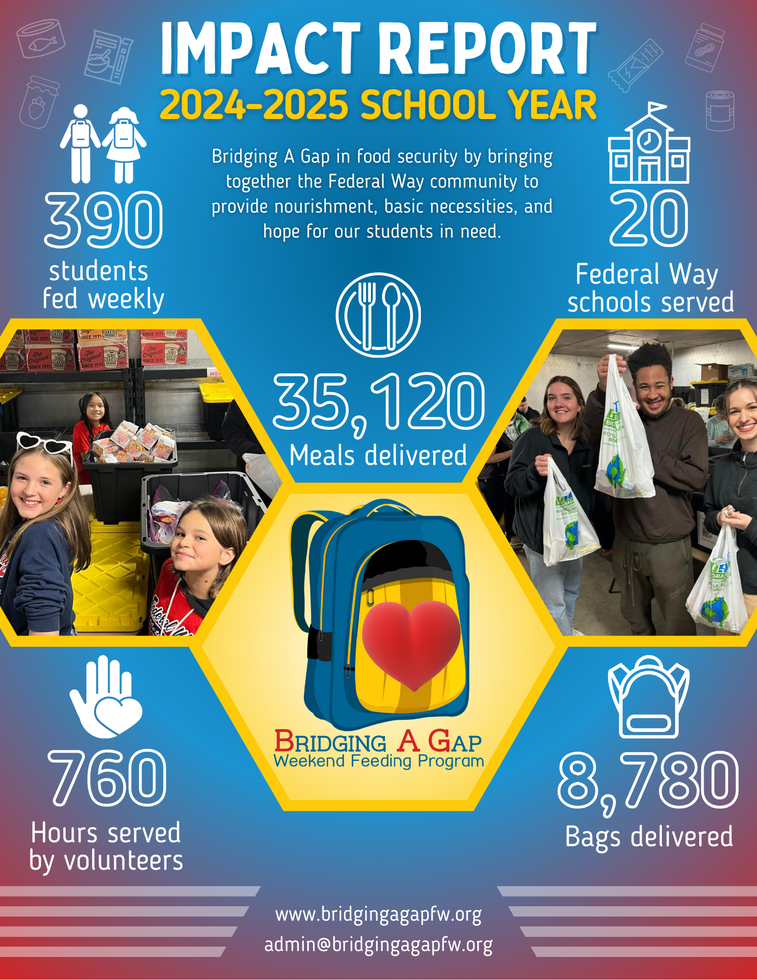 Bridging A Gap in food security by bringing together the Federal Way community to provide nourishment, basic necessities, and hope for our students in need.